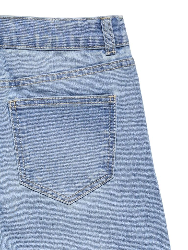 Der weite Beinschnitt sorgt für eine lässige Silhouette und ein angenehmes Tragegefühl - ideal für Schule, Freizeit und besondere Anlässe. Der klassische Knopf- und Reissverschluss bietet sicheren Halt, während die praktischen Vorder- und Gesässtaschen sowie die Münztasche das typische Denim-Design unterstreichen.