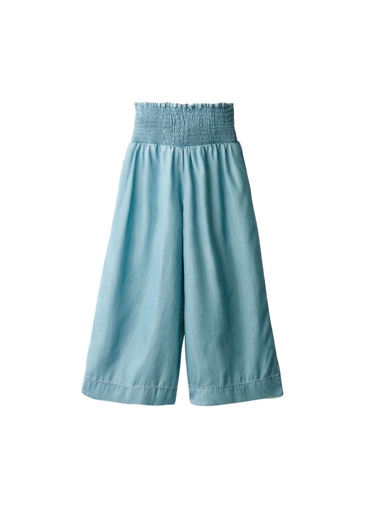 Der hohe, gesmokte Gummibund bietet eine flexible, bequeme Passform und passt sich optimal an. Gleichzeitig setzt er einen modischen Akzent und unterstreicht den entspannten Charakter der Hose. Der hellblaue Denim-Look verleiht dem Design eine lässige Ausstrahlung - perfekt für Ferien, Ausflüge oder den Alltag.
