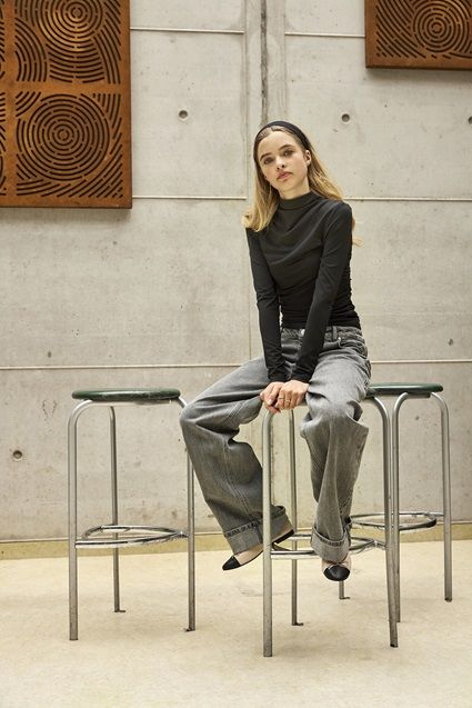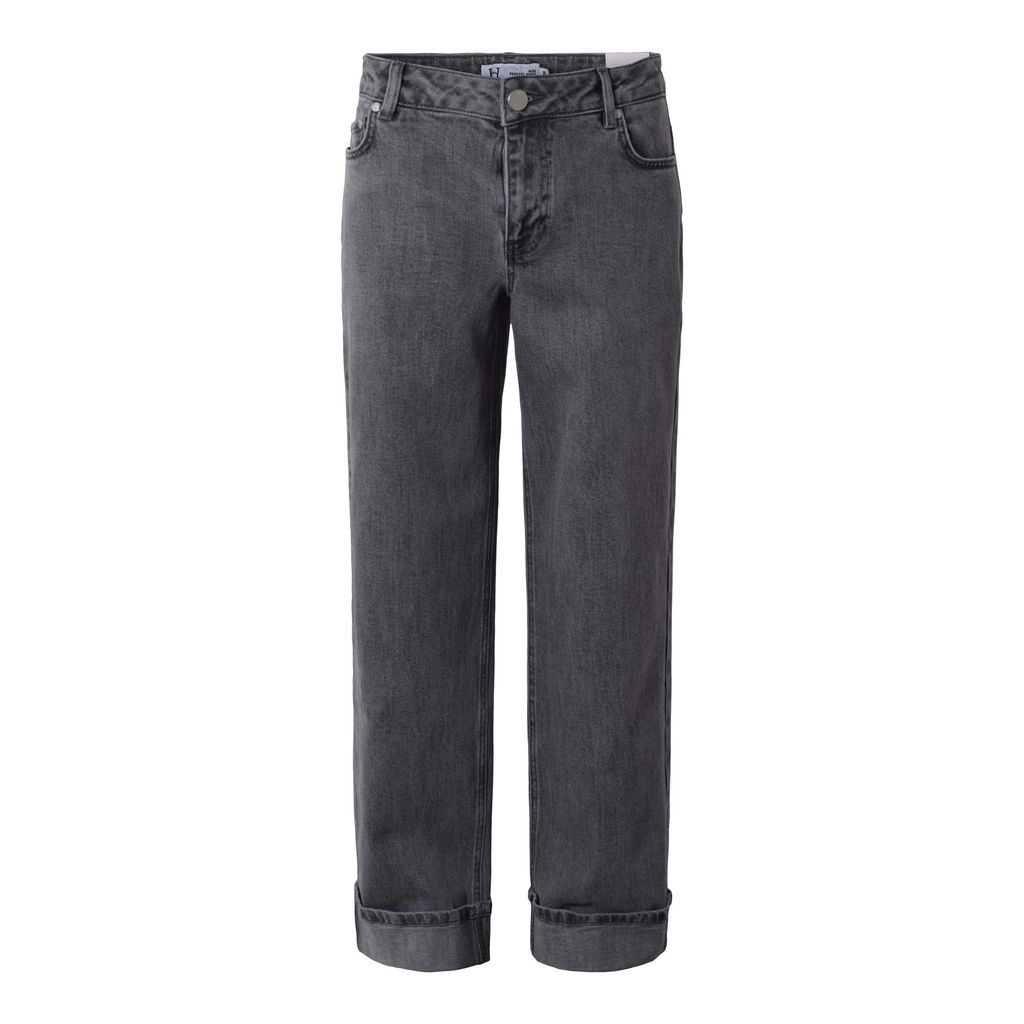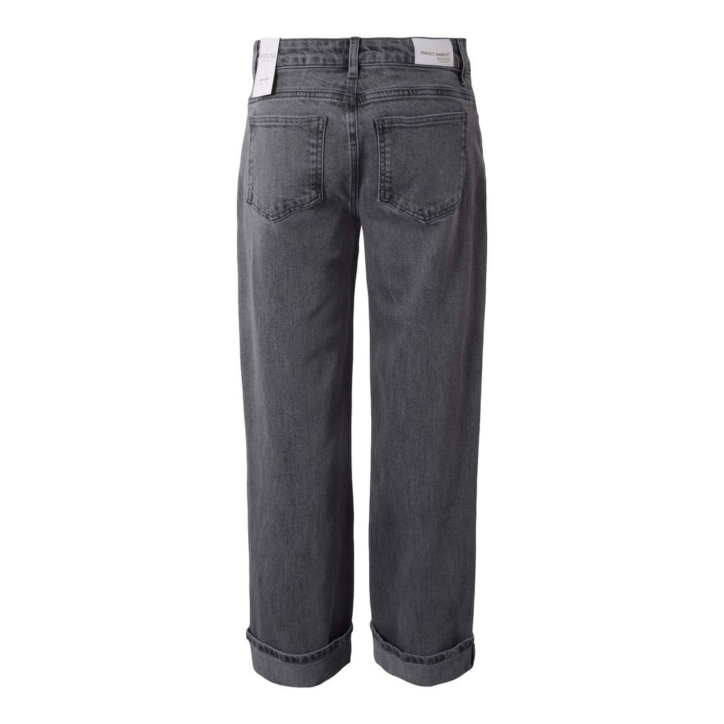Denim-Jeans mit Stretch, weitem Bein, Vorder- und Gesässtaschen. Reissverschluss und Knopf auf der Vorderseite und verstellbarer Gummibund. Die Hose hat Löcher an den Knien für einen coolen Raw-Look.