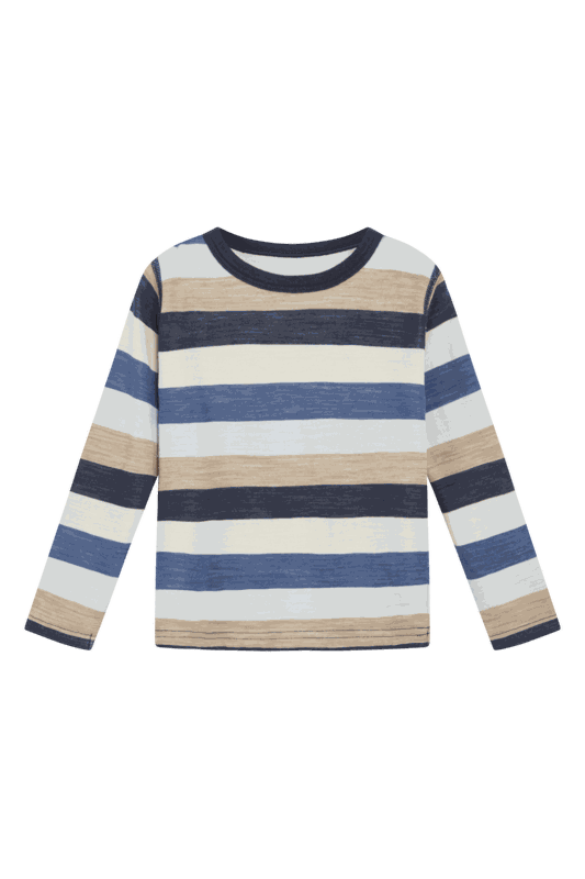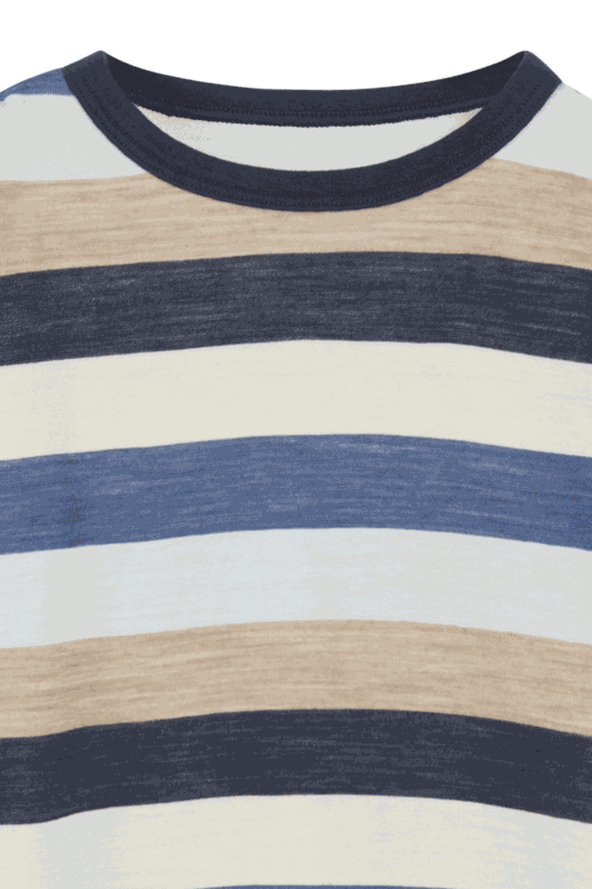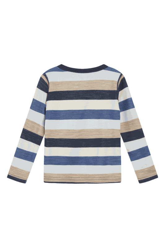 Gestreiftes Langarmshirt aus angenehmer, dehnbarer Wolle und Bambusviskose. Innen aus Bambus-Viskose und aussen aus Wolle gefertigt.