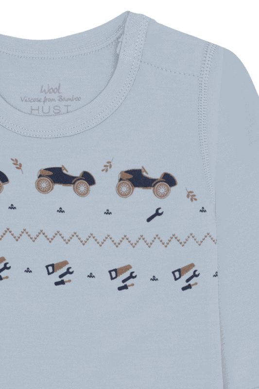 Dieser langärmelige Bodysuit kombiniert weiche, dehnbare Merinowolle aussen mit komfortabler Bambus-Viskose innen - für maximalen Tragekomfort. Der fröhliche Auto-Print macht ihn zum perfekten Hingucker für kleine Abenteurer. Praktisch: Druckknöpfe an der linken Schulter und im Schritt erleichtern das An- und Ausziehen.