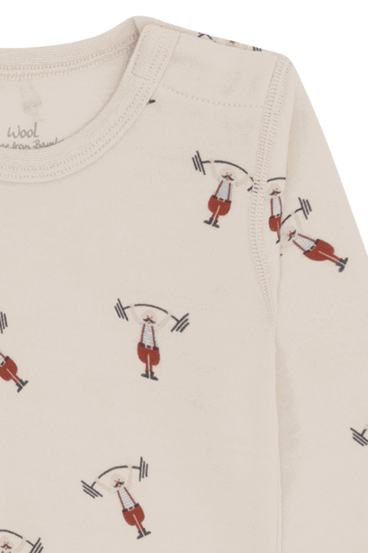 Ein Body, der alles kann: weich, dehnbar und super bequem. Dieser Langarm-Body von Hust & Claire besteht aus einer cleveren Kombination - Wolle aussen, Bambusviskose innen. So liegt er kuschelig und sanft auf der Haut, wärmt zuverlässig und bleibt gleichzeitig atmungsaktiv. Der witzige Strongman-Print macht den Body zu einem originellen Hingucker im Alltag.