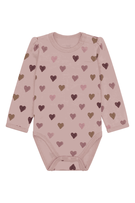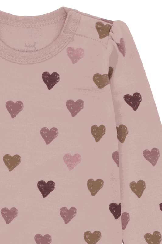 Hust & Claire Langärmeliger Bodysuit aus Wolle & Bambus-Viskose - Herz-Print