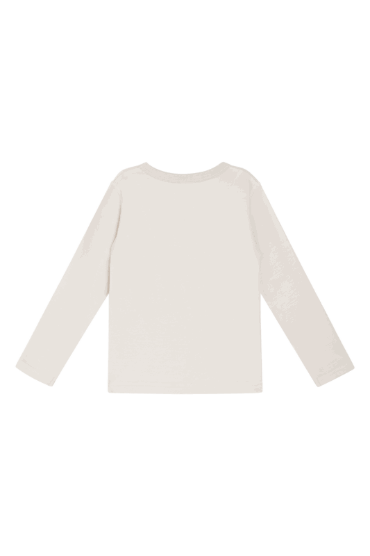 Langarmshirt aus angenehmer, dehnbarer Wolle und Bambusviskose. Innen aus Bambus-Viskose und aussen aus Wolle gefertigt.