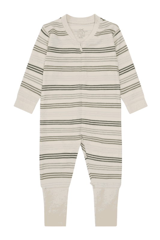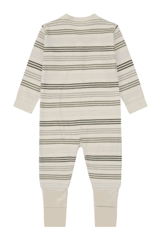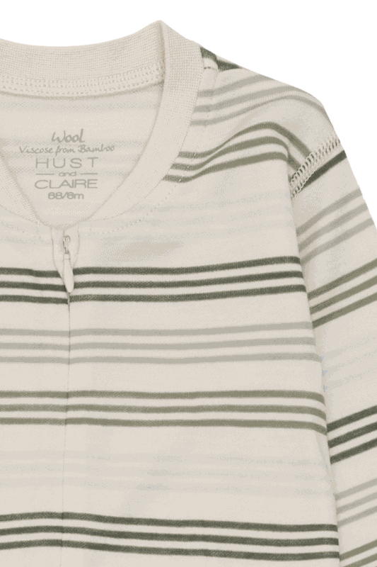 Dieser langärmelige Schlafanzug kombiniert weiche, dehnbare Merinowolle mit komfortabler Bambus-Viskose auf der Innenseite und sorgt so für ein kuscheliges Tragegefühl. Das leichte, gestreifte Design macht den Schlafanzug besonders stilvoll. Der praktische Knopfverschluss verläuft leicht asymmetrisch vom Hals bis zum linken Fuss und erleichtert das An- und Ausziehen.