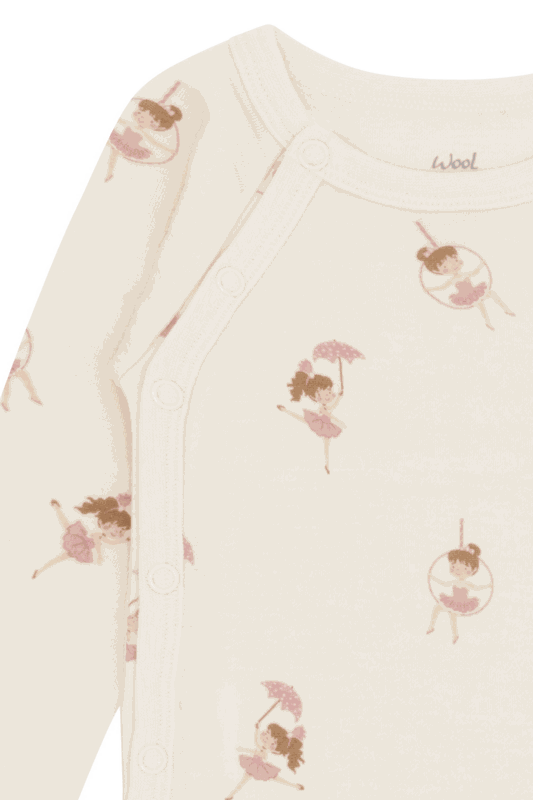 Dieser langärmelige Bodystocking vereint weiche, dehnbare Merinowolle aussen mit komfortabler Bambus-Viskose innen und sorgt so für optimalen Tragekomfort. Der entzückende Balletttänzer-Print macht ihn zu einem zauberhaften Hingucker für kleine Tänzerinnen. Dank des praktischen Wickelverschlusses auf der rechten Seite und der Druckknöpfe zwischen den Beinen wird das An- und Ausziehen spielend leicht.